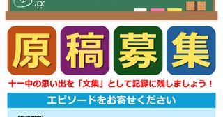 目黒区立第十一中学校は令和7年3月31日をもって閉校となり、同じく閉校となる目黒区立第八中学校と統合され、同年4月より「目黒区立目黒西中学校」として生まれ変わります。これに伴い、目黒区立第十一中学校の同窓会などによる「目黒区立第十一中学校さよならイベント実行委員会」が発足され、令和7年3月ごろに閉校記念誌の「さよなら文集」を出版するべく、その準備を現在進めております。目黒区立第十一中学校の思い出を記録に残しませんか? 皆さまからのエピソードを、ぜひお寄せくださいませ。